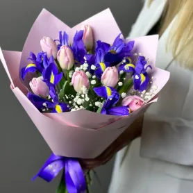 Весенний букет с тюльпанами и ирисами