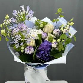 Если вам не нужна впечатляющая композиция, а монобукеты не отвечают требованиям разнообразия, то обратите внимание на этот шикарный букет из гортензий, лизиантусов и других цветов. Нежный, воздушный, невероятный букет для подарка.