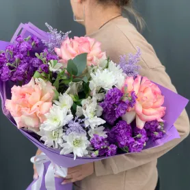 Некоторые растения и материалы являются сезонными, и мы оставляем за собой право производить замены в составе букета, с сохранением исходной цветовой гаммы и стоимости.