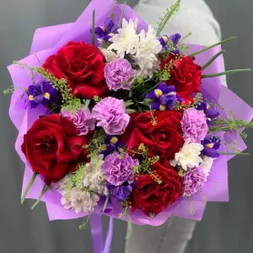 Букет из французских роз с ирисами