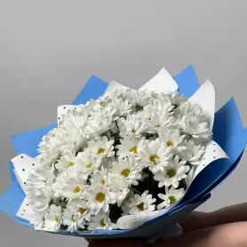 Этот букет притягивает взгляды своей прелестной красотой. Белоснежные цветы хризантемы выглядят очень нежно и элегантно, создают впечатление нежности и чистоты. Они напоминают о летнем поле, покрытом белыми цветами, и создают атмосферу спокойствия и гармонии. Однако, не только красота и аромат делают этот букет особенным. Хризантемы также обладают высокой стойкостью. Они сохраняют свою свежесть и красоту на протяжении длительного времени, что делает этот букет замечательным подарком для мамы, жены, сестры, дочери или подруги В целом, букет из милых белоснежных веток ромашковой хризантемы - это прекрасный и универсальный подарок, который порадует любого человека. Он обладает всеми качествами, которые делают его особенным: красотой, очарованием, милым видом, стойкостью и замечательным ароматом.