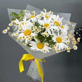 Летний букет из садовых и полевых ромашек.