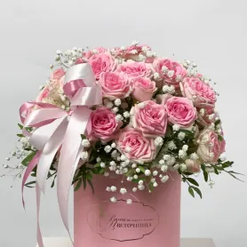 Нежная коробка с розовыми кустовыми розами