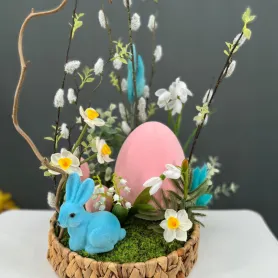 Пасхальная композиция из искусственных цветов с фигурками украсит интерьер, поддержит праздничное и радостное настроение. Композиция может стать милым и незабываемым подарком в этот праздник.