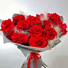 Этот большой букет из 15 красных французских роз - воплощение стиля и элегантности. Каждая роза пронизана грацией и изысканностью, создавая неповторимую атмосферу роскоши. Яркий красный цвет этих роз символизирует страсть и любовь, делая букет невероятно привлекательным. Он поразит ваше воображение и удивит своей красотой. Этот букет - подарок, который невозможно проигнорировать, он притягивает взгляды и вызывает восторг.