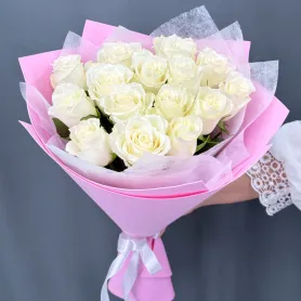 Нежный букет из 15 белых роз.