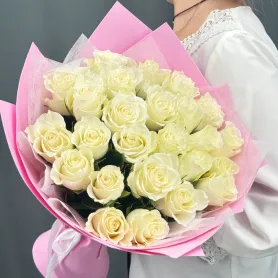 Нежный букет из 25 белых роз.