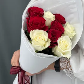 Букет из красных и белых роз 9шт