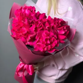 Яркий букет из малиновых французских роз.